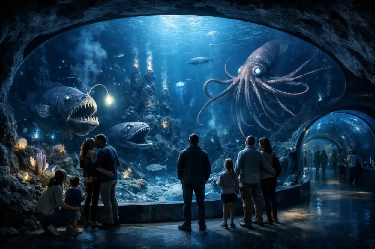 Посетители смогут познакомиться с загадочным миром океанских глубин, увидеть редких представителей морской фауны и узнать больше о том, как устроена жизнь на больших глубинах.